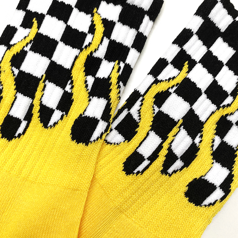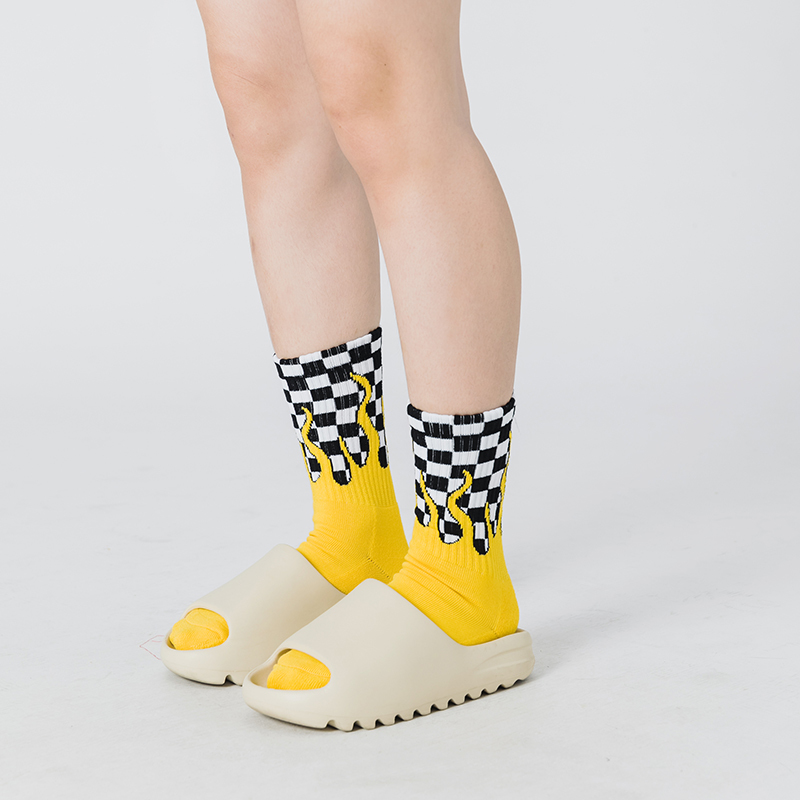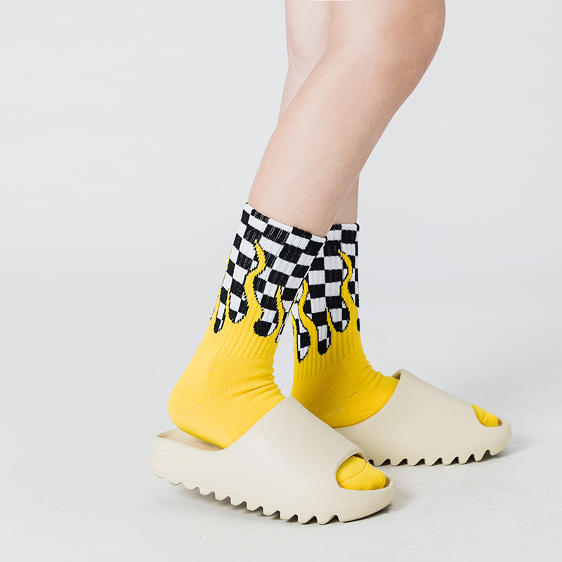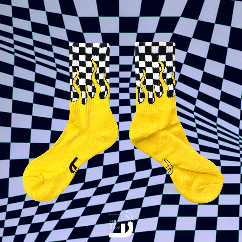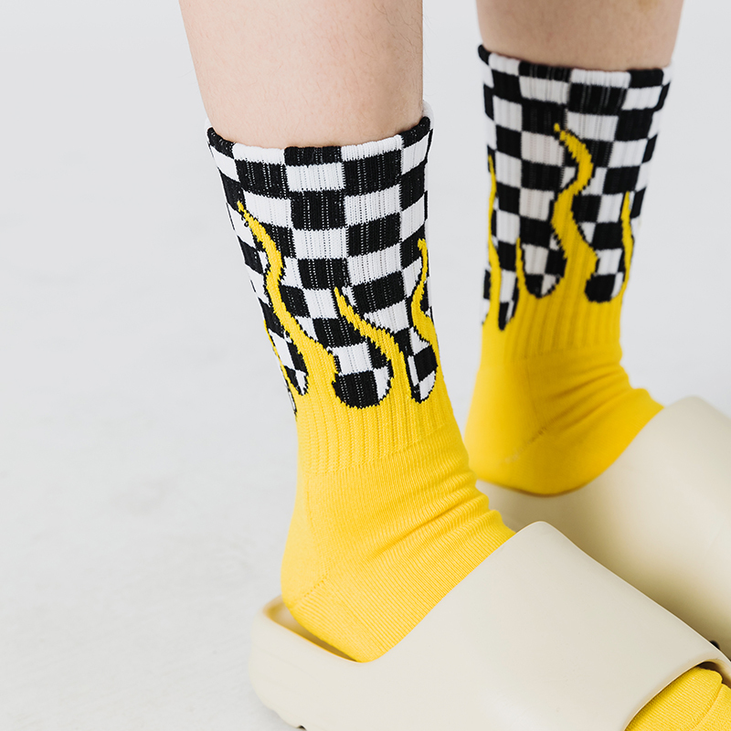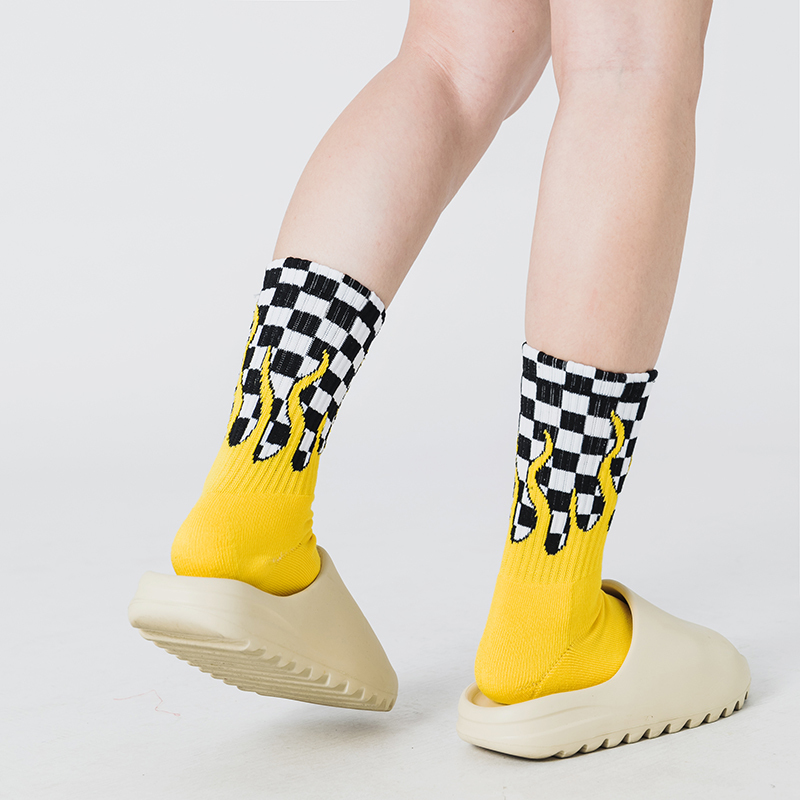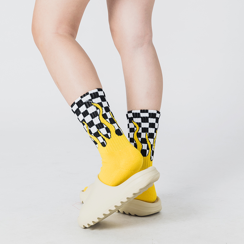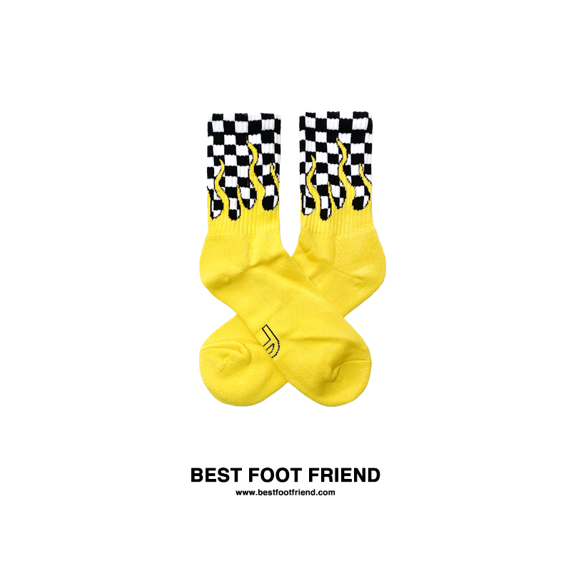 火焰棋盤格長襪_黃色_BF200016